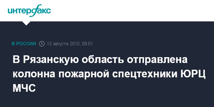 Ростов-на-Дону. 12 августа. INTERFAX.RU - Колонна выскопроходимой пожарной спецтехники Южного регионального центра (ЮРЦ) МЧС РФ отправилась на тушение пожаров в Рязанскую область. "Для усиления противопожарной группировки в Рязанской области ЮРЦ МЧС РФ сформировал колонну высокопроходимой пожарной спецтехники, которая состоит из 20 единиц, в ее составе также 64 специалиста", - сообщили агентству "Интерфакс-Юг" в пресс-службе ЮРЦ МЧС РФ.