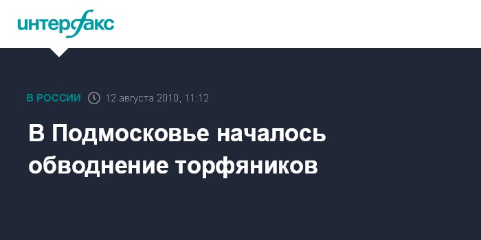 Красногорск. 12 августа. INTERFAX.RU - Подмосковные власти начали обводнение торфяников в Коломенском, Шатурском и Егорьевском районах, на что им потребуется десять трубопроводов общей протяженностью 300 км, сообщил губернатор Московской области Борис Громов. "Процесс обводнения практически начался в Коломенском, Шатурском и Егорьевском районах. Мы определились в том, что нам необходимо для начала этой работы. Нужно будет провести десять трубопроводов общей протяженностью 300 км", - сказал Громов в четверг на заседании оперативного штаба по борьбе с природными пожарами в Подмосковье.