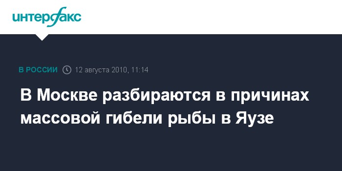 Москва. 12 августа. INTERFAX.RU - На поверхности воды реки Яузы в минувшую среду было обнаружено массовое скопление мертвой рыбы, сообщили в четверг "Интерфаксу" в департаменте природопользования и охраны окружающей среды столицы. "Утром в среду на пульт "02" ГУВД поступила информация о массовой гибели рыбы в районе Матросского моста через реку Яузу. В 9:25 сотрудники экологической милиции выехали на место происшествия", - рассказал собеседник агентства.