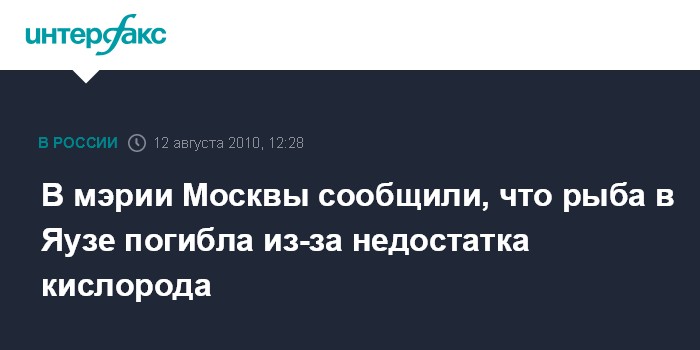 Москва. 12 августа. INTERFAX.RU - Массовая гибель рыбы в московской реке Яузе, по предварительным данным, связана с недостатком кислорода, сообщил "Интерфаксу" источник в мэрии, знакомый с ситуацией в четверг. "Предварительная экспертиза показала, что загрязнений воды в Яузе, в районе Матросского моста, не обнаружено", - сказал собеседник агентства.