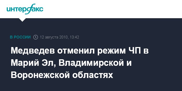 Медведев отменил режим ЧП в Марий Эл, Владимирской и Воронежской областях