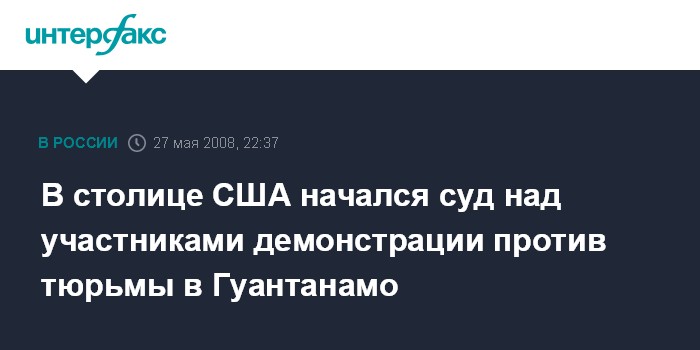 Вашингтон. 27 мая. ИНТЕРФАКС - Суд в Вашингтоне начал во вторник рассмотрение дела 35 человек, задержанных за участие в несанкционированной демонстрации против тюрьмы на американской военной базе в Гуантанамо (Куба).