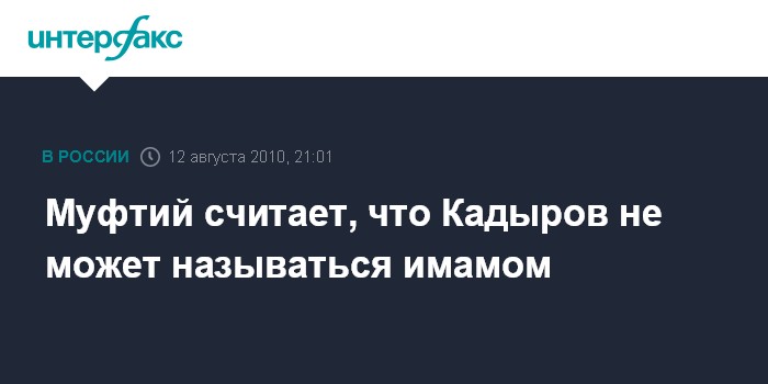 Москва. 12 августа. INTERFAX.RU - Сопредседатель исполкома Межрелигиозного совета СНГ, исполнительный директор Международной исламской миссии муфтий Шафиг Пшихачев считает, что глава современной Чечни не может именоваться имамом.