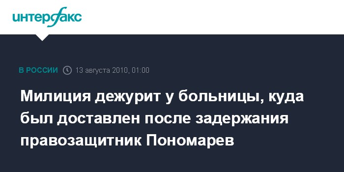 Милиция дежурит у больницы, куда был доставлен после задержания правозащитник Пономарев