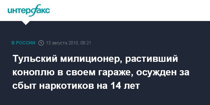 Тульский милиционер, растивший коноплю в своем гараже, осужден за сбыт наркотиков на 14 лет
