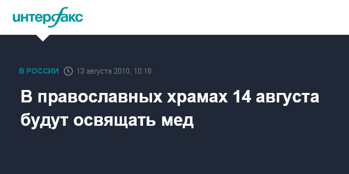 Москва. 13 августа. INTERFAX.RU - Православные верующие по традиции 14 августа принесут в храмы для освящения мед урожая нынешнего года, сообщили агентству "Интерфакс" в пятницу в Минском епархиальном управлении Белорусской православной церкви.