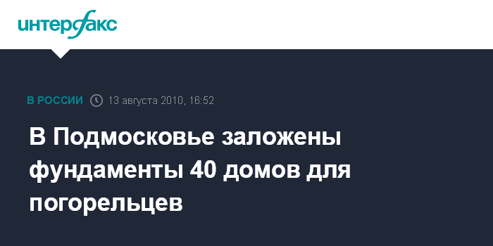 Москва. 13 августа. INTERFAX.RU - Строительство домов для подмосковных погорельцев идет с опережением графика, сообщает правительство Московской области.