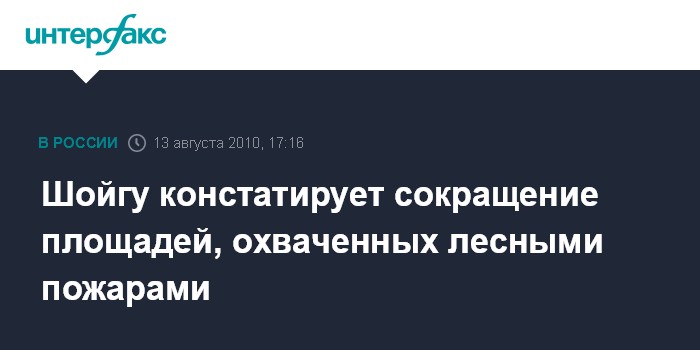 Москва. 13 августа. INTERFAX.RU - Глава МЧС РФ Сергей Шойгу заявляет, что в последние дни ситуация с природными пожарами на территории России улучшилась, в 14 субъектах Федерации природных пожаров нет.
