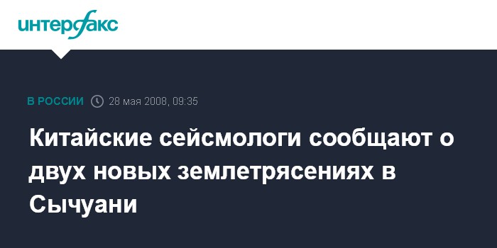 Пекин. 28 мая. INTERFAX.RU - Минувшей ночью в китайской провинции Сычуань, где от недавнего землетрясения погибли более 64 тысяч человек, были зарегистрированы новые подземные толчки.