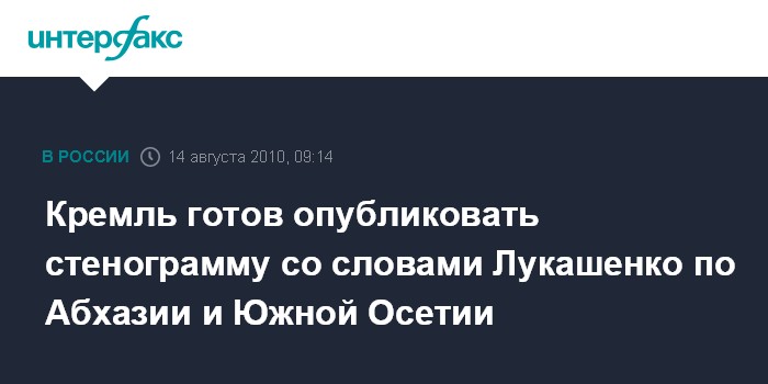 Кремль готов опубликовать стенограмму со словами Лукашенко по Абхазии и Южной Осетии