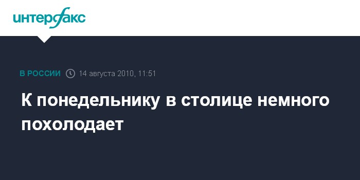 Москва. 14 августа. INTERFAX.RU - В выходные в Москве ожидается жаркая погода, однако температурные показатели будут ниже тех, которые наблюдались в городе последние несколько недель. В субботу и воскресенье синоптики московского метеобюро обещают безоблачную погоду, температура воздуха порядка +28 градусов. В понедельник же на небе появятся облако, пройдут дожди, ожидаемая дневная температура воздуха опустится еще на градус.