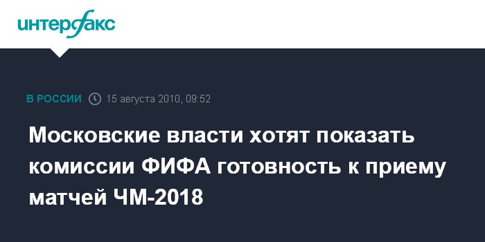 Московские власти хотят показать комиссии ФИФА готовность к приему матчей ЧМ-2018