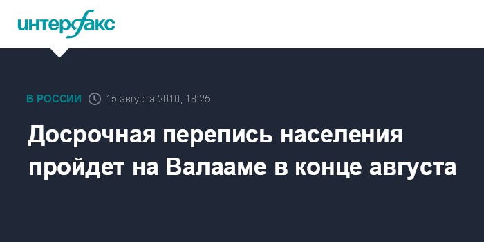 Петрозаводск. 15 августа. INTERFAX.RU - На Валаамском архипелаге с 20 по 27 августа пройдет досрочная перепись населения, сообщили "Интерфаксу" правительстве Карелии.