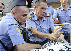 Результат, как уже говорилось, оказался привычным: сотрудниками милиции были задержаны два человека, в том числе, как сообщил "Интерфаксу" источник в правоохранительных органах столицы, один из организаторов не согласованной с властями акции - член Объединенного гражданского фронта Александр Хатов. Как отметил собеседник агентства, акция не согласована со столичными властями, и после неоднократных предупреждений милиция начала задержание.
