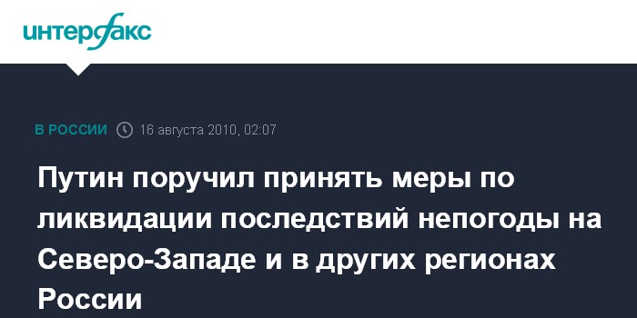 Москва. 16 августа. ИНТЕРФАКС - Премьер-министр РФ Владимир Путин поручил членам правительственной комиссии по предупреждению и ликвидации чрезвычайных ситуаций предпринять все необходимые меры в связи с прохождением холодного фронта в регионах Северо-Западного, Центрального и Приволжского федеральных округов, сообщили в пресс-службе правительства.