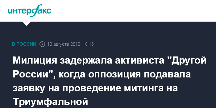 Милиция задержала активиста "Другой России", когда оппозиция подавала заявку на проведение митинга на Триумфальной