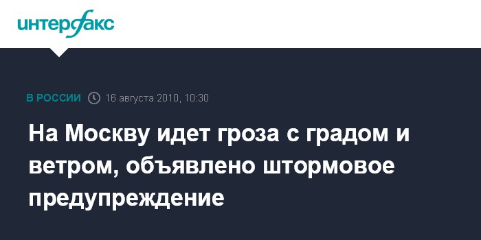На Москву идет гроза с градом и ветром, объявлено штормовое предупреждение