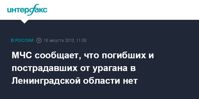 МЧС сообщает, что погибших и пострадавших от урагана в Ленинградской области нет