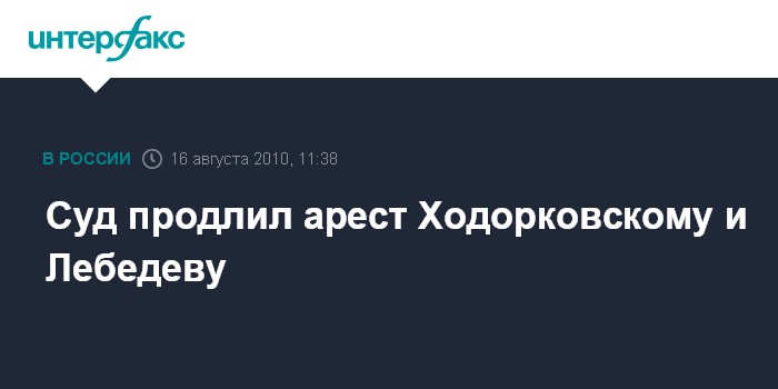 В последний раз срок ареста был продлен до 17 августа. Защитники Ходорковского и Лебедева называют продление судом их сроков содержания под стражей расправой. По мнению адвокатов, законных оснований для продления этой меры пресечения у суда нет, поскольку вступившие в силу поправки в УПК, которые предложил президент, ограничили избрание ареста для тех, кто обвиняется в совершении преступлений в сфере предпринимательской деятельности.