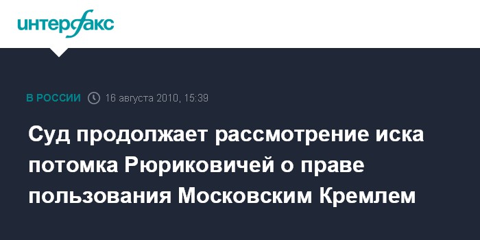 Суд продолжает рассмотрение иска потомка Рюриковичей о праве пользования Московским Кремлем