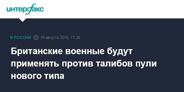 Дели. 16 августа. INTERFAX.RU - Военнослужащие Великобритании вскоре начнут применять против мятежников из движения "Талибан" в Афганистане новые пули "Грязный Гарри" калибра 5,56 мм, способные наносить урон противнику на большом расстоянии, сообщают в понедельник индийские СМИ.
