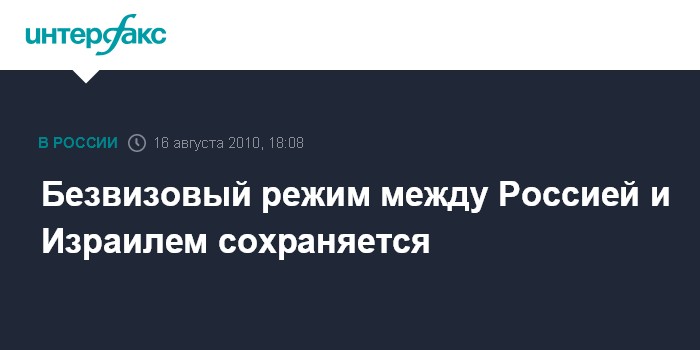 Москва. 16 августа. INTERFAX.RU - Россия и Израиль не планируют отказываться от безвизового режима.