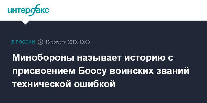Минобороны называет историю с присвоением Боосу воинских званий технической ошибкой