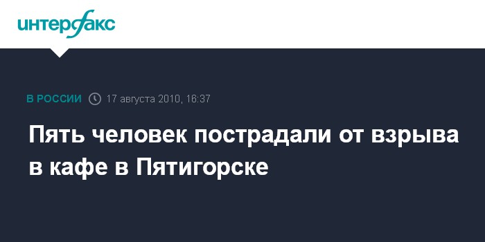 Москва. 17 августа. INTERFAX.RU - В одном из кафе Пятигорска прогремел взрыв, сообщил во вторник агентству "Интерфакс" источник в городском отделе внутренних дел.