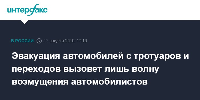 Москва. 17 августа. INTERFAX.RU - Инициатива московских властей об эвакуации припаркованных на тротуарах и переходах автомобилей не освободит пешеходные зоны, но приведет к дополнительной волне возмущения автомобилистов, считает лидер Федерации автовладельцев России (ФАР) Сергей Канаев.