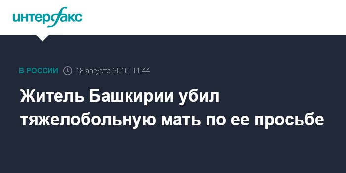 Уфа. 18 августа. INTERFAX.RU - Следственные органы Башкирии расследуют случай эвтаназии: 20-летний сын убил тяжелобольную 51-летнюю мать по ее просьбе.