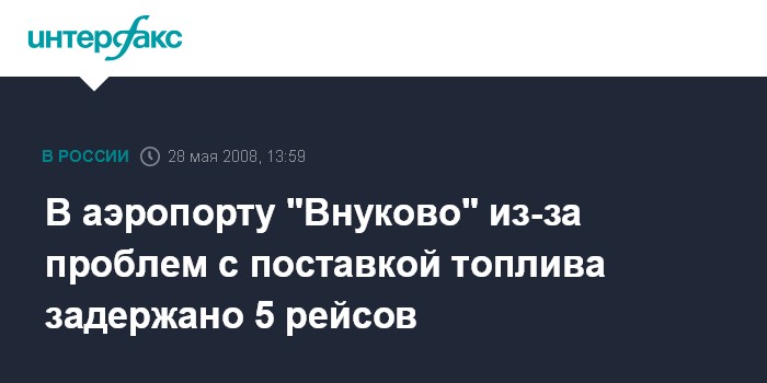 В аэропорту "Внуково" из-за проблем с поставкой топлива задержано 5 рейсов