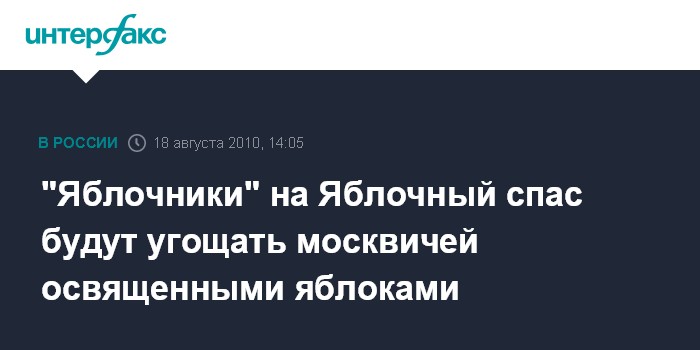 "Яблочники" на Яблочный спас будут угощать москвичей освященными яблоками