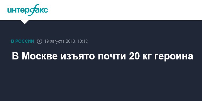 Москва. 19 августа. INTERFAX.RU - Московские наркополицейские изъяли 18 кг высококачественного героина, сообщили "Интерфаксу" в отделе информации и общественных связей Управления ФСКН по Москве в четверг.