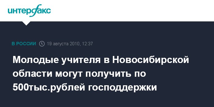 Новосибирск. 19 августа. INTERFAX.RU - Выпускники педагогических вузов 2009 и 2010 года, занявших одну из 19 вакансий, определенных для Новосибирской области Министерством образования и науки РФ, могут претендовать на получение государственной поддержки.