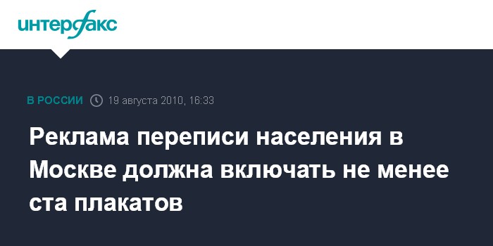 Реклама переписи населения в Москве должна включать не менее ста плакатов