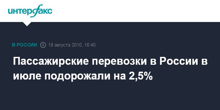 Пассажирские перевозки в России в июле подорожали на 2,5%