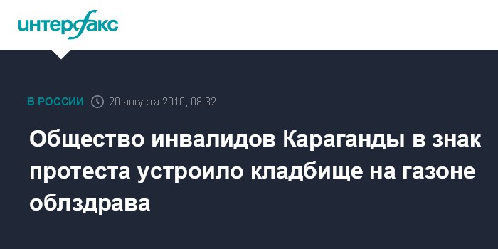 Москва. 20 августа. INTERFAX.RU - Председатель общества инвалидов Караганды "Тирлик" Роза Петрусь организовала своеобразную акцией протеста "Совесть здравоохранения" перед управлением здравоохранения.