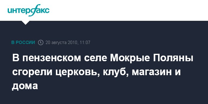 Москва. 20 августа. INTERFAX.RU - Крупный пожар произошел в четверг в селе Мокрые Поляны Никольского района Пензенской области.