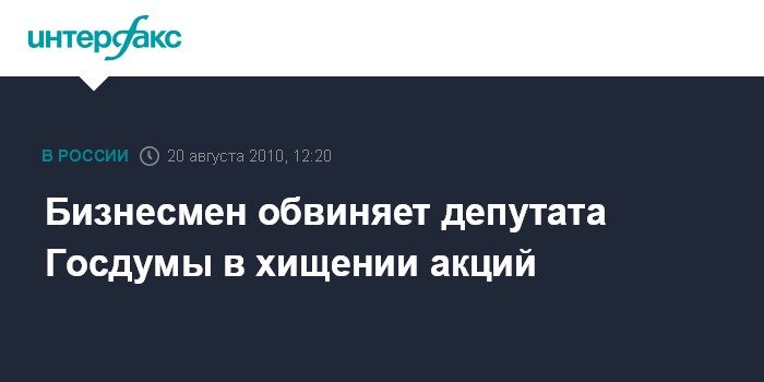 Бизнесмен обвиняет депутата Госдумы в хищении акций