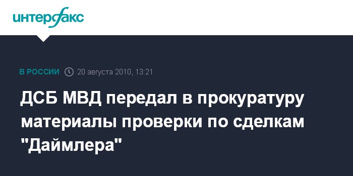 Москва. 20 августа. INTERFAX.RU- Департамент собственной безопасности (ДСБ) МВД РФ завершил проверку по материалам публикаций в СМИ о коррупционных сделках концерна "Даймлер" в ходе поставок автомобилей "Мерседес" для системы министерства внутренних дел.