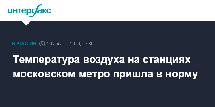 Москва. 20 августа. INTERFAX.RU - Температура воздуха на станциях московского метрополитена упала ниже нормы эксплуатации метро в летний период, сообщили "Интерфаксу" в столичной подземке в пятницу.