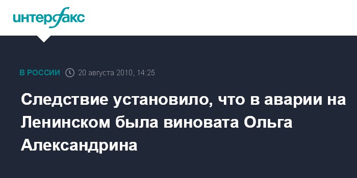 Следствие установило, что в аварии на Ленинском была виновата Ольга Александрина