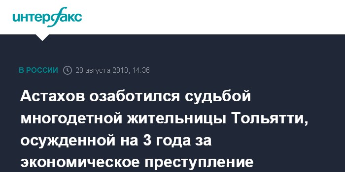 Самара. 20 августа. INTERFAX.RU - Уполномоченный при президенте РФ по правам ребенка Павел Астахов выступил с заявлением в связи с решением тольяттинского суда, который приговорил за экономическое преступление беременную многодетную мать четырех детей к реальному сроку заключения.