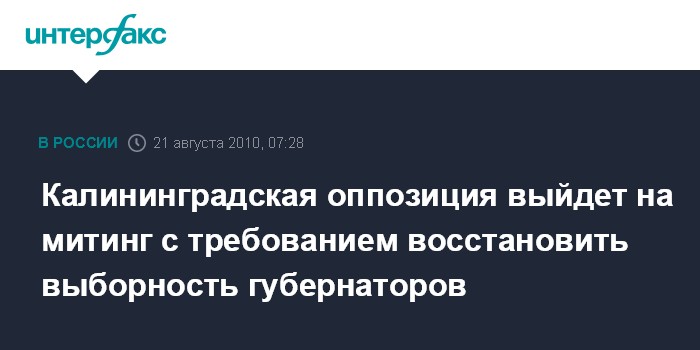 Калининград. 21 августа. ИНТЕРФАКС СЕВЕРО-ЗАПАД - Калининградская оппозиция рассчитывает, что митинг протеста, назначенный на 21 августа, пройдет без эксцессов.