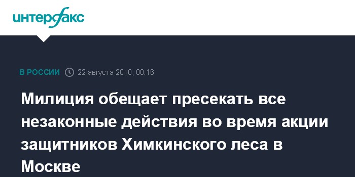 Милиция обещает пресекать все незаконные действия во время акции защитников Химкинского леса в Москве