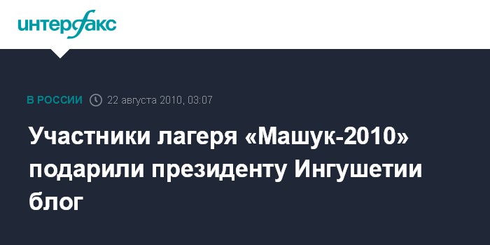 Участники лагеря «Машук-2010» подарили президенту Ингушетии блог