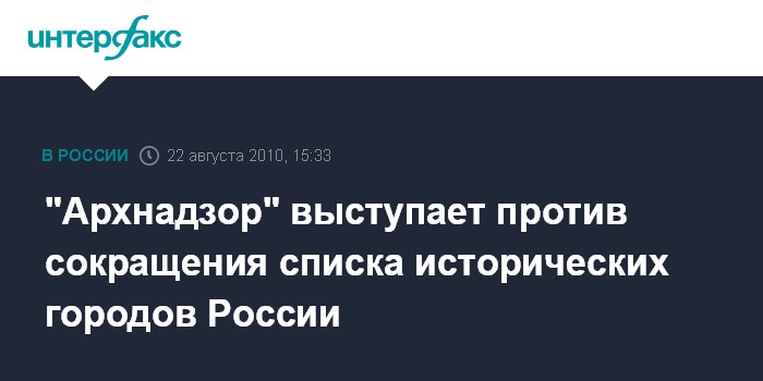 "Архнадзор" выступает против сокращения списка исторических городов России