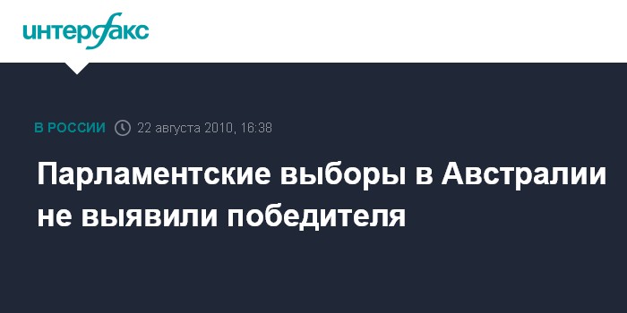 Лондон. 22 августа. INTERFAX.RU - Всеобщие парламентские выборы, проходящие в эти выходные в Австралии, не выявили победителя, сообщила в воскресенье британская телерадиокорпорация Би-би-си. На данный момент подсчитано 78% голосов избирателей.