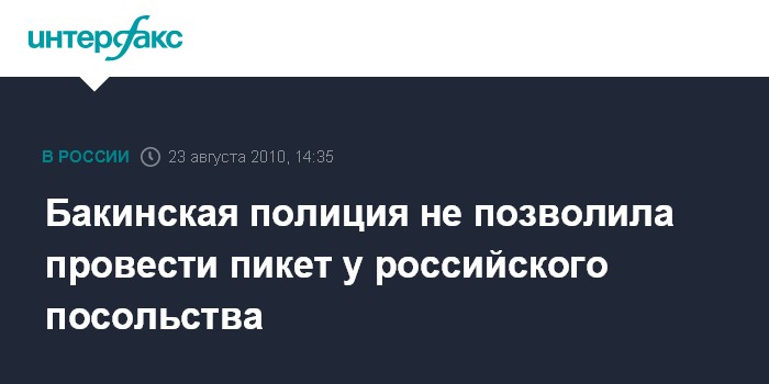 Москва. 23 августа. INTERFAX.RU - Группа активистов азербайджанской неправительственной Организации освобождения Карабаха" (ООК) попыталась провести в понедельник несанкционированную властями акцию протеста у здания посольства РФ в Баку.