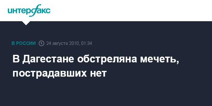 Ростов-на-Дону. 24 августа. ИНТЕРФАКС-ЮГ - В селении Хуциевка в Дагестане неизвестные из автоматов обстреляли мечеть, сообщили агентству "Интерфакс-Юг" в РОВД Кизлярского района Дагестана.